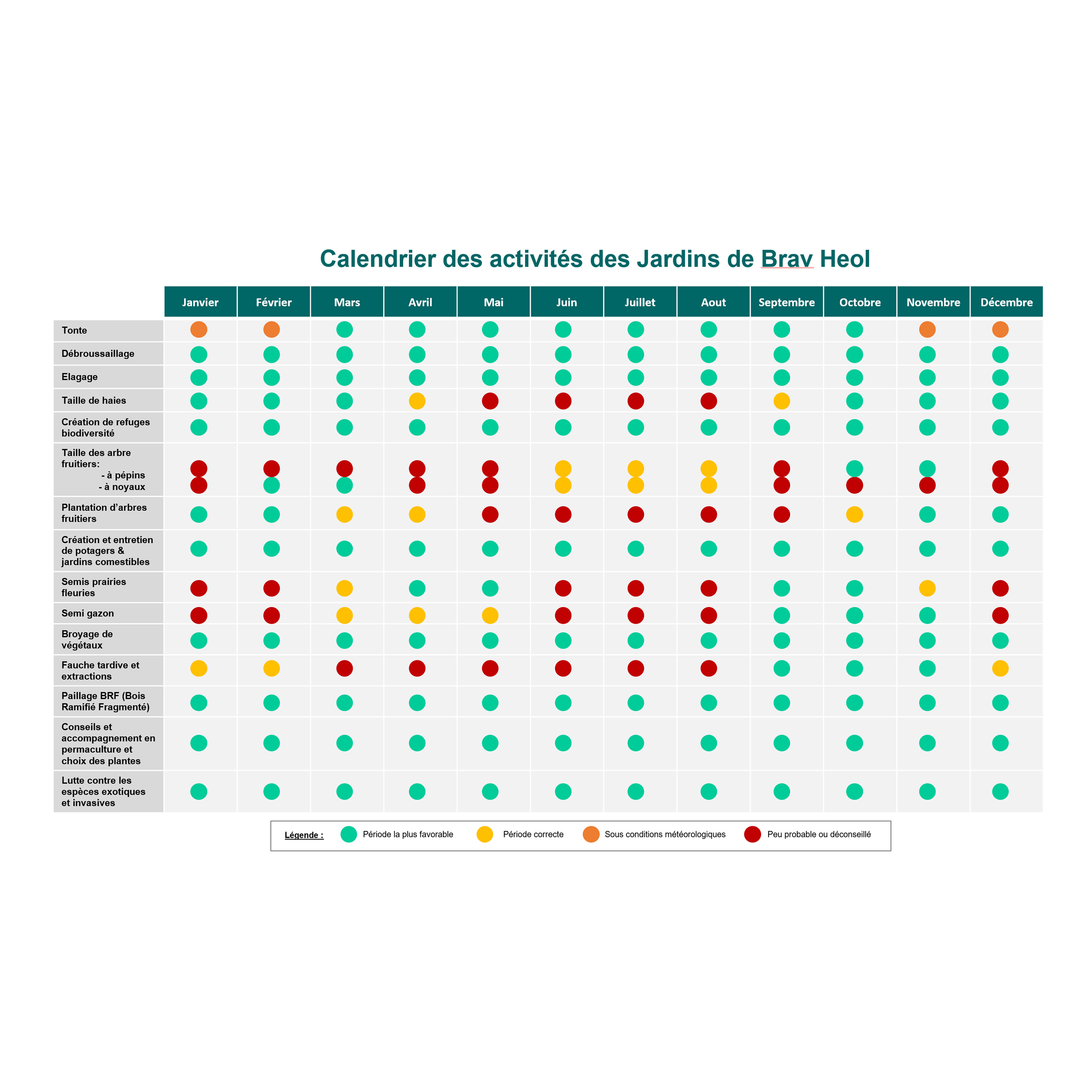 Calendrier des prestations